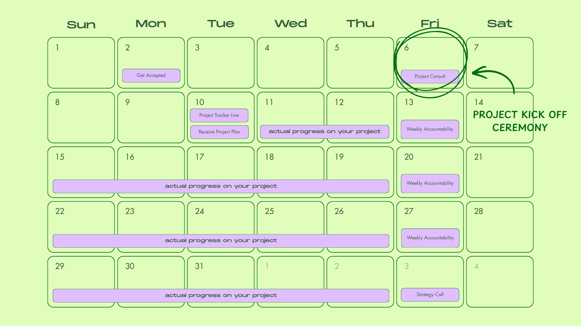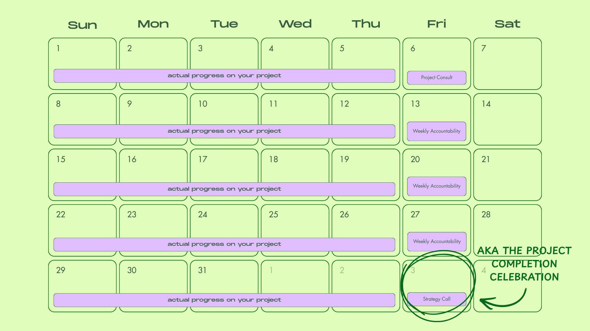 what the 8-week project completion sprint looks like with your creative project manager by your side 🧚
