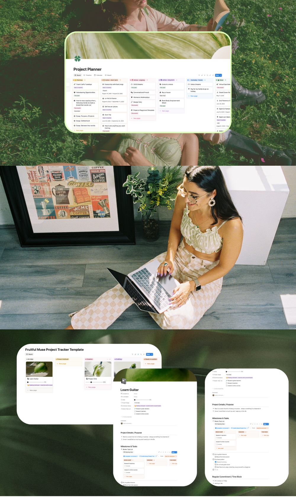 A custom done-with-you project plan and system to follow in Notion - a living document where all your projects live in one place, and in a way that makes sense for your brain